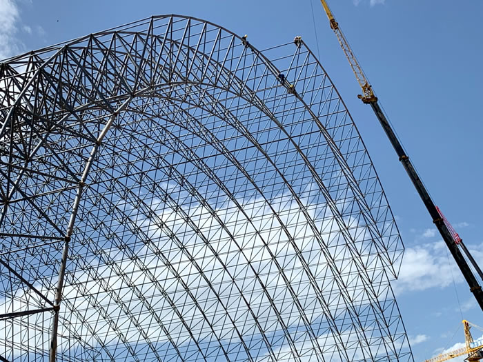 (2)网架加工前应对现场尺寸进行复测,确认无误后方可进行加工、安装;网架制作、运输、安装应遵守《空间网格结构技术规程》JGJ7-2010、《钢网架南阳螺栓球节点》JG/T 10-2009、《钢网架南阳螺栓球节点用高强度螺栓》 GB/T 16939-2016、《南阳钢结构南阳工程南阳施工规范》 GB50755-2012、《南阳钢结构南阳工程南阳施工质量验收标准》 GB50205-2020。